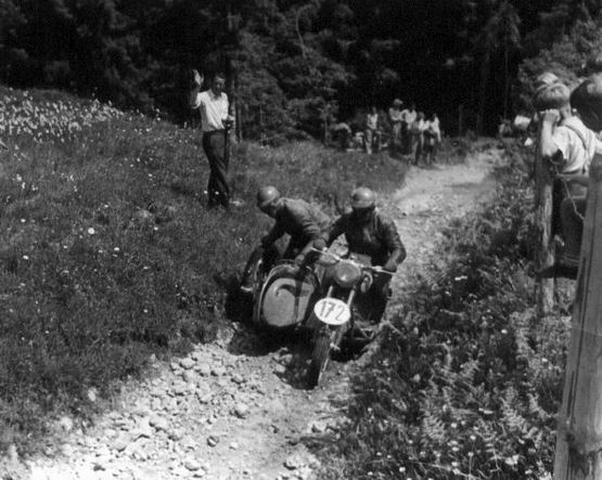 Die folgenden Aufnahmen sind aus dem Privatarchiv von Erhard Carius. Herr Carius ist ehemaliger Geländesportfahrer der Werksmannschaft von MZ. Zwischen 1953 und 1957 war er als Schmiermaxe von Herrn Scherzer (siehe Rubrik "historische Reisen" ADAC-Fahrt) mit einer Geländesport-BK bei nationalen und internationalen Rennen (Bsp.: Garmisch-Partenkirchen).