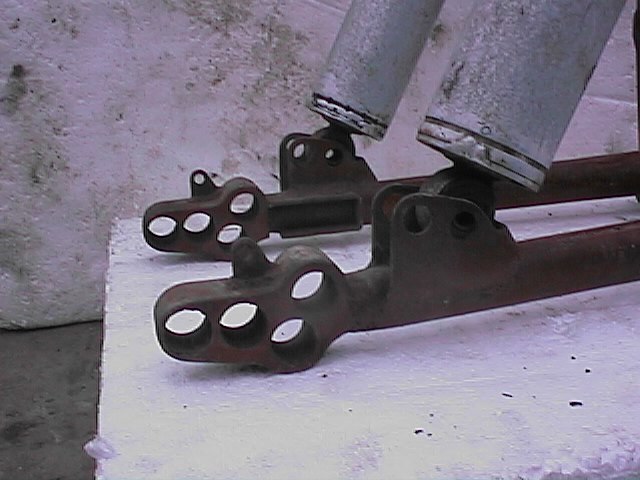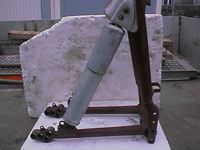 Nachlaufes. Abgestützt wird die Schwinge durch 2 Federbeine(2fach in der