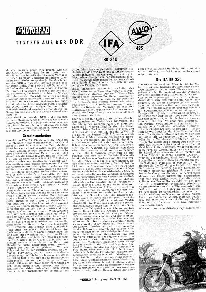 Testbericht von AWO425T und IFA BK 350 MOTORRAD 1955 | |||||
