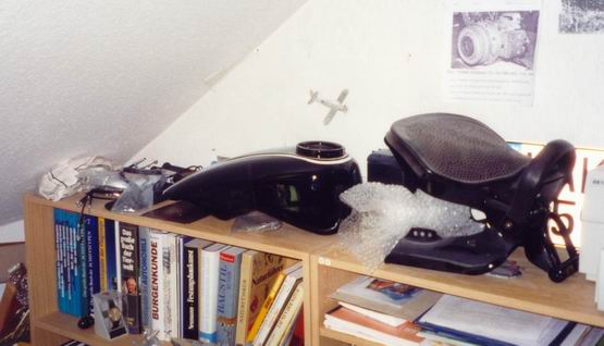 Um dann im Winter 2001/2002 endlich die Teile soweit zusammenstecken zu können, dass die Maschine rollbar und die Regale leer waren - habe ich dann noch einen kompletten Motor (zugegeben ein ziemlich runtergekommener Treibsatz einer "Eisernen Kuh") für die handvoll Kleinteile abgegeben. Ich hatte keine Lust mehr, ewig zu suchen und zu verhandeln. So bekam ich alles aus einem wohlsortierten, privaten Teilelager - mit der Option einmal wiederzukommen ;) Seitdem hat sich an der EMW nicht sehr viel getan. So wie sie da steht, ist sie eigentlich einsatzbereit. Die Räder müssten noch mal exakt gespannt und die hässliche Undichtigkeit durch den krummen Ölwannendeckel beseitigt werden. Aber das soll meine Schwester dann übernehmen, wenn Sie die EMW in knapp zwei Jahren zulassen will. Zumindest die Ölpumpe hat sie schon alleine ausgebaut und gereinigt ;)