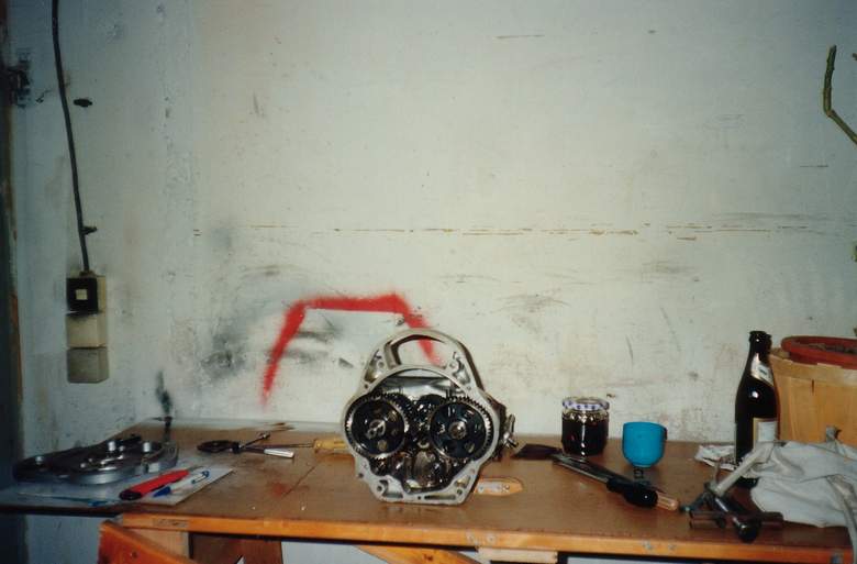 Dann war das Getriebe dran. Eigentlich wollte ich nur eine neue Abdichtung vornehmen, da die Funktion einwandfrei war und die Lagerspiele noch recht gut erschienen. Aber da kam wieder mein Bekannter in´s Spiel, der sich mit BMW-/EMW-/AWO-Getrieben auskannte. "Wenn schon, denn schon..!." und alle Wellen lagen auf dem provisorischen Arbeitstisch.... Ich kann nicht behaupten, mich in diesem Moment wohl gefühlt zu haben. Irgendwann in den frühen Morgenstunden waren wir dann fertig und ich froh, denn in einem Mietshaus kann man nicht unbedingt auf das Verständnis der anderen Mitbewohner hoffen, wenn es um Geruchs- und Lärmbelästigung geht. Alle Lager waren neu, das Getriebe zusammen, offensichtlich dicht und es ließ sich einwandfrei schalten. Aber was war das? Ein Gang "fehlte" einfach!!? Abbruch! Nächster Abend, neue Runde. Irgendwann kam ich drauf (dank "Referenzgetriebe"!), dass die Einstellung/Zusammenbau mit eingelegtem ersten Gang vorgenommen werden muß! Etwas untypisch/unlogisch, aber es ist so. Ein "Meilenstein der Erkenntnis" (für uns beide). Kardangetriebe: die Suche nach dem "QB 20"-Lager kennt wohl jeder, der den Kardan schon mal überholen wollte. Irgendwann habe ich dann per Internet einen namhaften Anbieter in der Schweiz gefunden, der solche Lager in Neufertigung anbietet. Preis? -> utopisch!! Bei diversen Anfragen in deutschen Landen habe ich dann die (falsche!!) Auskunft erhalten, dass auch ein "herkömmliches" Lager, neuer Fertigung, in guter Qualität geht. Von dem, nun auch verbauten, QB304 erfuhr ich erst relativ spät. Rahmen/Blechteile: diese hatte ich bei einem professionellen Restaurateur zur Aufarbeitung abgegeben. Schließlich sollten ja auch Lackierung und Handlinierung (!) stimmen. Von den vielen Löchern im hinteren Kotflügel (die schon an ein Sieb erinnerten!) ist nichts mehr zu sehen.