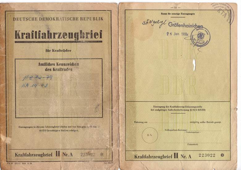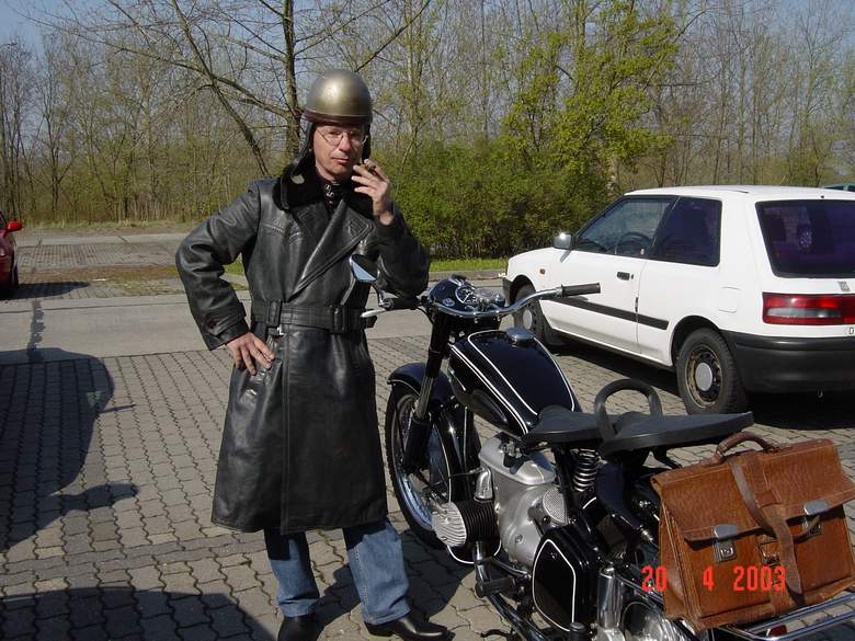 vorläufiges Ende (fast): Als sich Ende Januar/Anfang Februar die Fertigstellung der BK abzeichnete, habe ich eine Außenstelle der DEKRA aufgesucht. Der dortige "Abnahme-Ingenieur" war erst nicht unbedingt mit "freundlich" zu bezeichnen. Als ich ihm mein Anliegen , demnächst eine restaurierte Bk zur Vollabnahme, aber keine aktuellen Papiere..........etc. vortrug, schaute er mich zunächst etwas skeptisch von oben nach unten an (bei meiner "lichten Höhe" von 170 cm meistens kein Problem; und wenn dann zusätzlich nicht mindestens 90 kg-Körpergewicht dastehen....). Er fragte wörtlich, ob ich da "....etwa so eine Schwuchtel, halb BK, halb AWO, mit Krampf auf Shopper getrimmt......" zusammengebastelt hätte. Nach meiner nochmaligen Versicherung, dass es sich um eine fast originalgetreue Restauration handelt, wurde er zusehends zugänglicher. Es folgte ein fast einstündiges Gespräch in seinem Büro, wo er mir noch manchen Tip gab und das mit dem Satz endete: "Wenn alles so ist, wie Sie es sagen, dann bekommen wir das schon mit der Vollabnahme, der Zulassung und den neuen Papieren für eine allgemeine Strassenzulassung hin!". In den kommenden Wochen war ich echt auf das "erste Lebenszeichen" meiner BK gespannt. Schließlich war sie noch nie gelaufen, bzw. hatte ich ja kein funktionierendes Motorrad restauriert. Irgendwann erfolgte dann der "Jungfern-Kick": und sie lief!!!!! Es gab noch unzählige Versuche mit Vergaser- und Zündeinstellung. Mit originalen 73 "Probekilometern", ging es am 19.03.2003 zur Vollabnahme. Ergebnis: ohne Mängel bestanden! Irgendwie kam mir der Himmel an dem Tag blauer vor als sonst... und zur "Fahrerbelohnung" gab es eine echte "Havanna"...